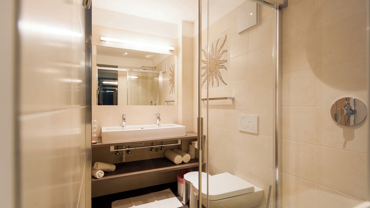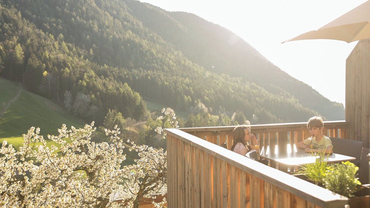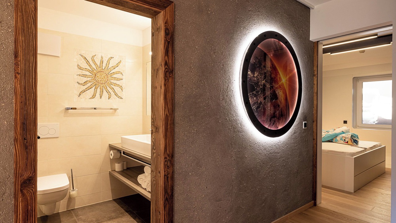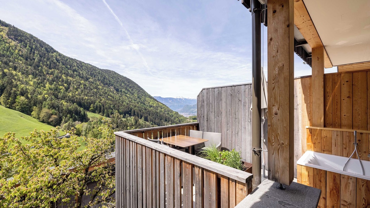 The cozy apartment “Sonnleiten Sonne Mond u Sterne” of family Mahlknecht is situated in Steinegg (Collepietra), in the beautiful area of South Tyrol, and is ideal for hiking, biking or romantic couples holidays. The family-friendly apartment consists of a living room, a well-equipped kitchen with a dishwasher, two bedrooms as well as one bathroom and can therefore accommodate 4 people. Additional amenities include Wi-Fi, a safe, satellite and cable television, a highchair and a baby cot. The second bedroom is a small separate room with a bunk bed (185x85 cm) for children, which can also be used as a stowage when no children are present. The panoramic balcony with herb garden invites you to sit and eat, and in the jacuzzi tub with a view of the Dolomites you can relax perfectly. In the communal outdoor area, you will find a spacious garden, where you can enjoy your own meals from the stone barbecue. Another highlight of the residence is the 200 m² spa area, including a 30° C indoor pool with massage nozzles, 2 saunas (one of them hot), a hay bed, a quiet room, as well as a play area for children. Here you can relax and unwind after a day of hiking, biking or skiing. The nearest supermarket is only a few minute walk (200 m) away, and restaurants with local dishes can be reached on foot from the apartment. The area is known as the first "star village", therefore you will find a planetarium, a solar observatory and a planet path 13 minutes (9.5 km) by car from the village, where you can look at the stars and get a feeling for the vastness of our solar system. Lake Carezza is located 34 minutes (25.7 km) south of the apartment. The capital of South Tyrol, Bolzano, can be reached by car in 22 minutes (13,8 km) and the famous mountain group Catinaccio is 39 minutes (29 km) east of the village.