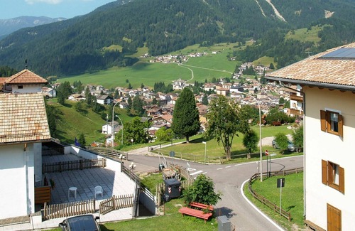 Apartment house "El Ladinia", 1'255 m a.s.l 4 storeys. 2 houses in the resort. 6 apartments in the residence. In the district of Someda 3 km from the centre of Moena, 7 km from the centre of Pozza di Fassa, 70 km from the centre of Bolzano, in a sunny, elevated position on a slope, in the residential district, south facing position. For shared use: property (fenced), terraced garden with lawn and trees, natural garden. Arbour, garden furniture, barbecue, children's playground (slide, swing). In the complex: lounge, WiFi, sauna (extra). Steam room (extra). Hydro massage bath (extra). Storage room for skis, washing machine (for shared use). Breakfast on request (extra). Parking at the house on the premises. Grocery 2.5 km, supermarket 5 km, 10 minute walk to the centre, indoor swimming pool 7.7 km. Golf course (9 hole) 16 km, skisport facilities 2 km, ski bus stop 100 m. Nearby attractions: Canazei (Sella Ronda) 17 km, Skiarea San Pellegrino 14 km. Well-known ski regions can easily be reached: Moena/Alpe Lusia 2 km, Pozza di Fassa/Buffaure (Sella Ronda) 8.2 km, Predazzo/Latemar 11 km. Please note: the owner lives in the same residence. The SPA area is located in the neighbouring hotel. (Payment on site).