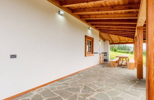 Situated in Livo, Italy, Villa "Casa del Larice" is a detached two-story property built in 2025, surrounded by meadows and fields. With a yard, Internet WiFi, and parking on the premises, this vacation rental offers a comfortable stay amidst the scenic countryside.
