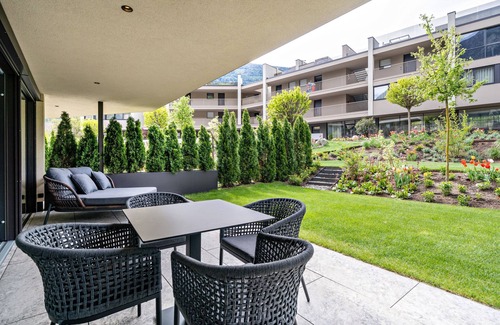 Additionally, this apartment offers a private outdoor space with a garden and a furnished covered terrace.